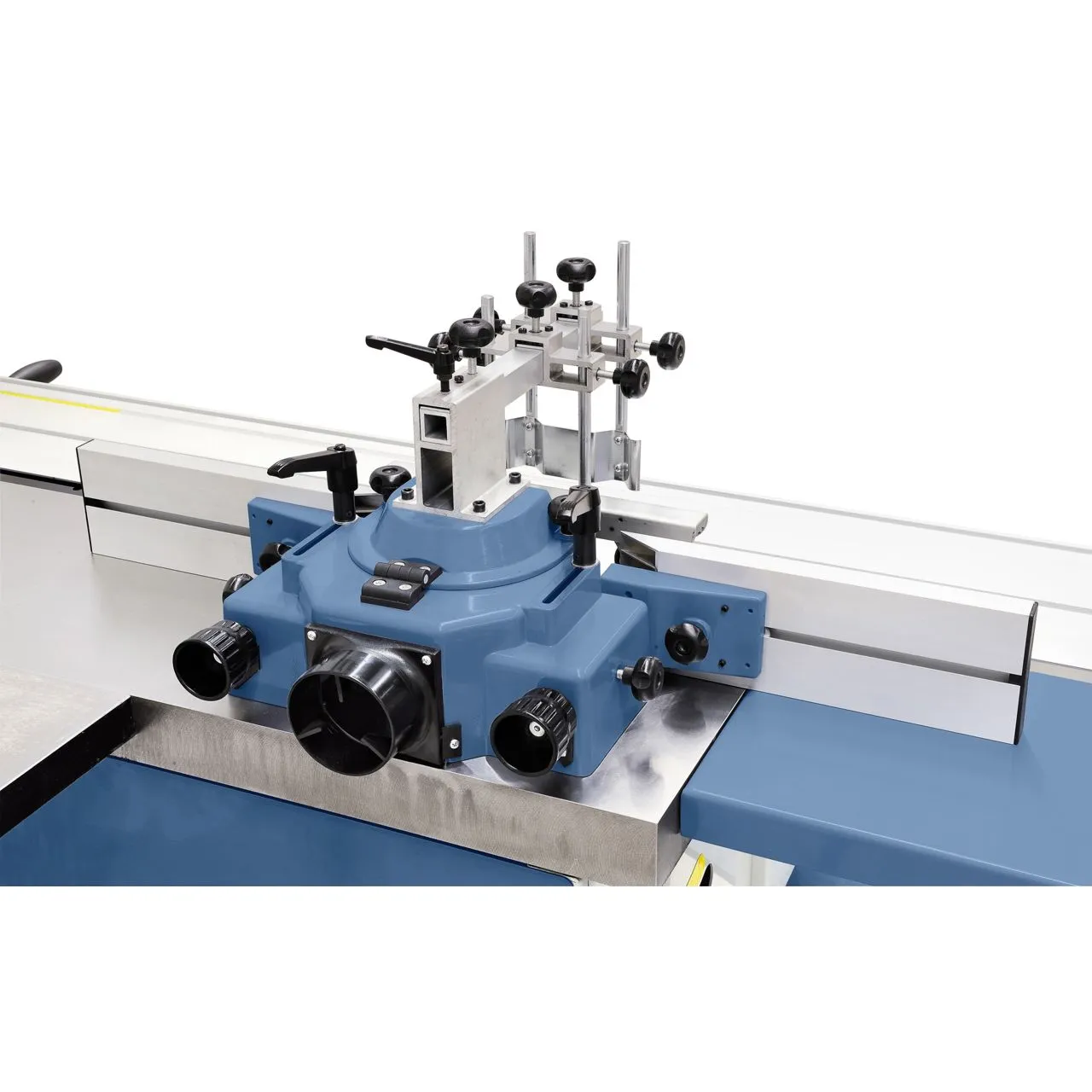 - Robuste capot de toupie avec rails de guidage en aluminium à réglage de précision