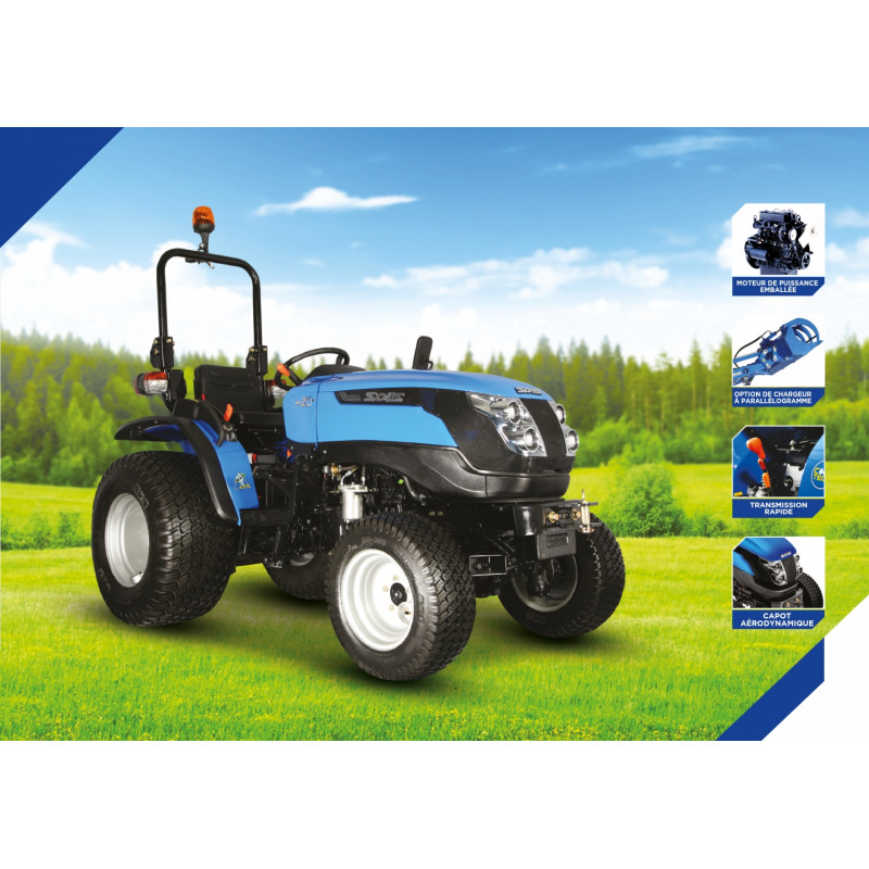 Le Solis 20 est un tracteur très fiable et économique doté d’une puissance remarquable, son moteur Mitsubishi de 952cc à maintenant fait ses preuves depuis 2013 en France. Sa puissance de relevage de 500kg et son couple moteur important facilite l’utilisation d’une large gamme d’accessoires. Il peut aussi être équipé d’un chargeur frontal.