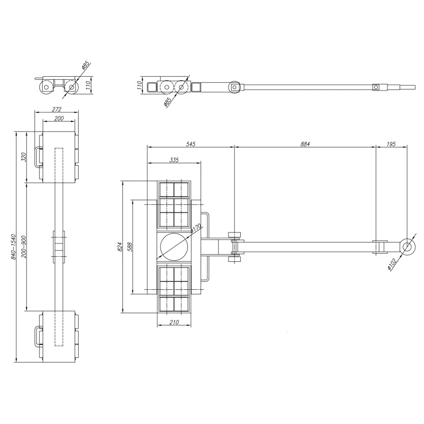 Les patins rouleurs pour charges lourdes à trois points sont composés d’un élément dirigeable avant et d’un élément réglable arrière. Les composants dirigeables avant sont équipés du timon correspondant. Les composants arrières sont de construction identique et disposent d’une barre de liaison réglable. Les roues sont en nylon résistant aux frottements.