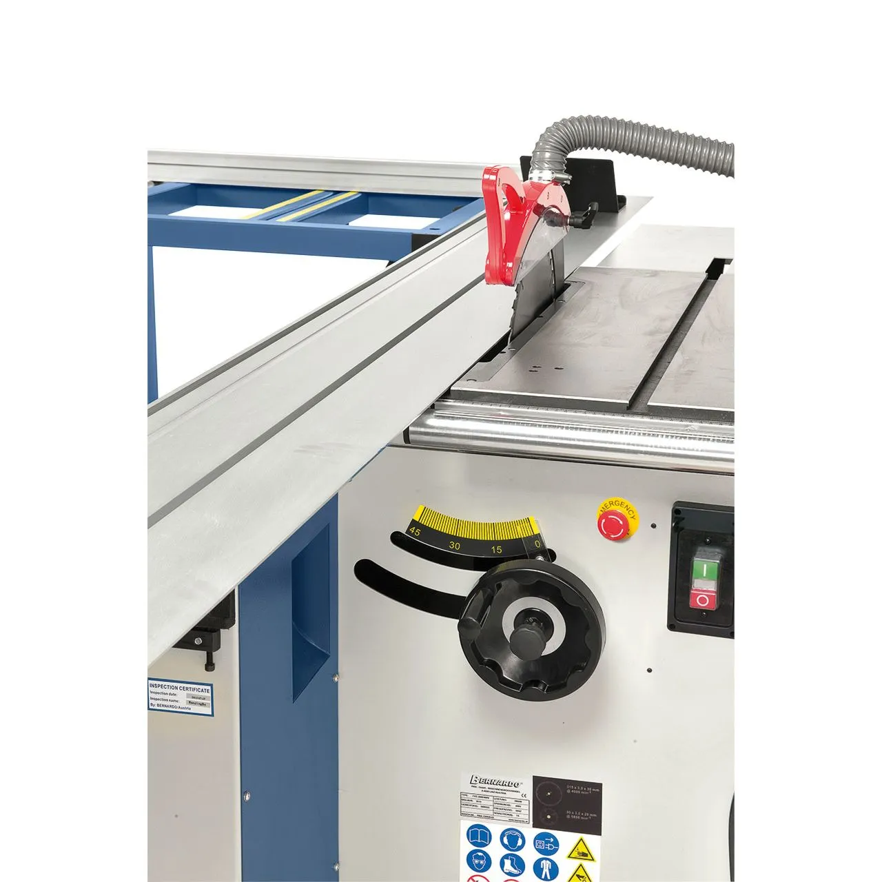 - Guide d‘onglet et serre-flan déplaçables sur toute la longueur du chariot