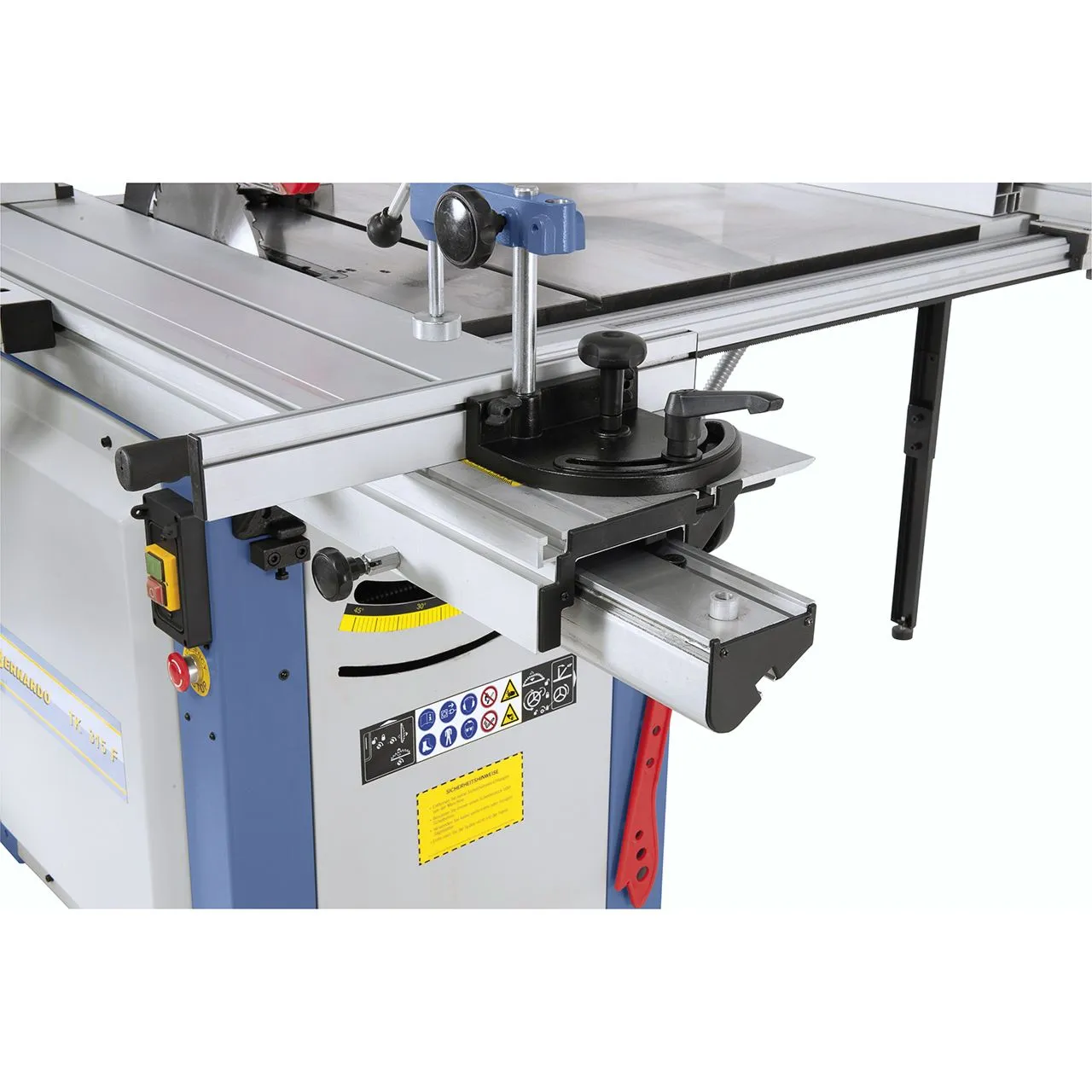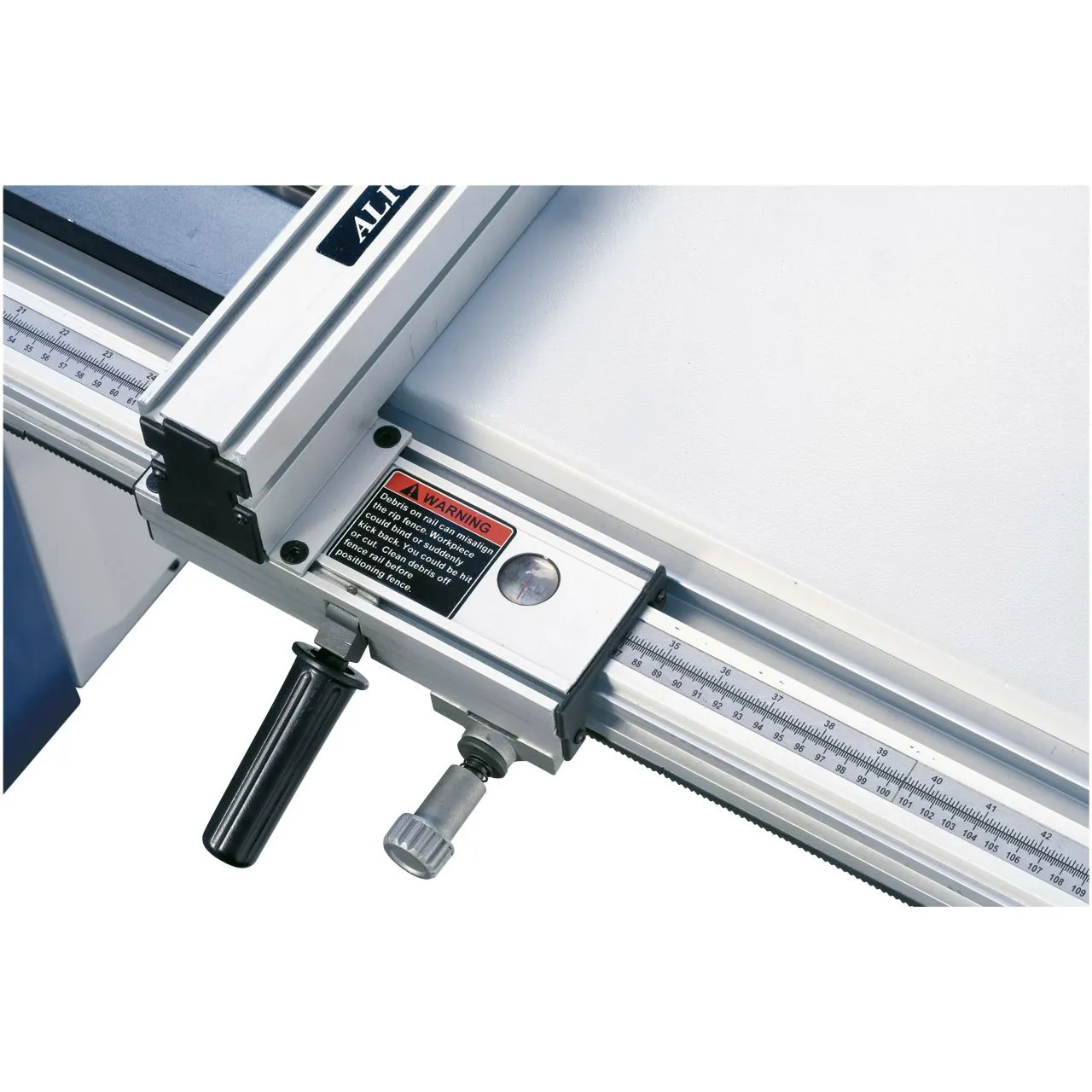 - Guide télescopique extensible (jusqu’à 2 260 mm) à monter sur la table coulissante à l’avant ou à l’arrière, orientable de 90° à 45°
