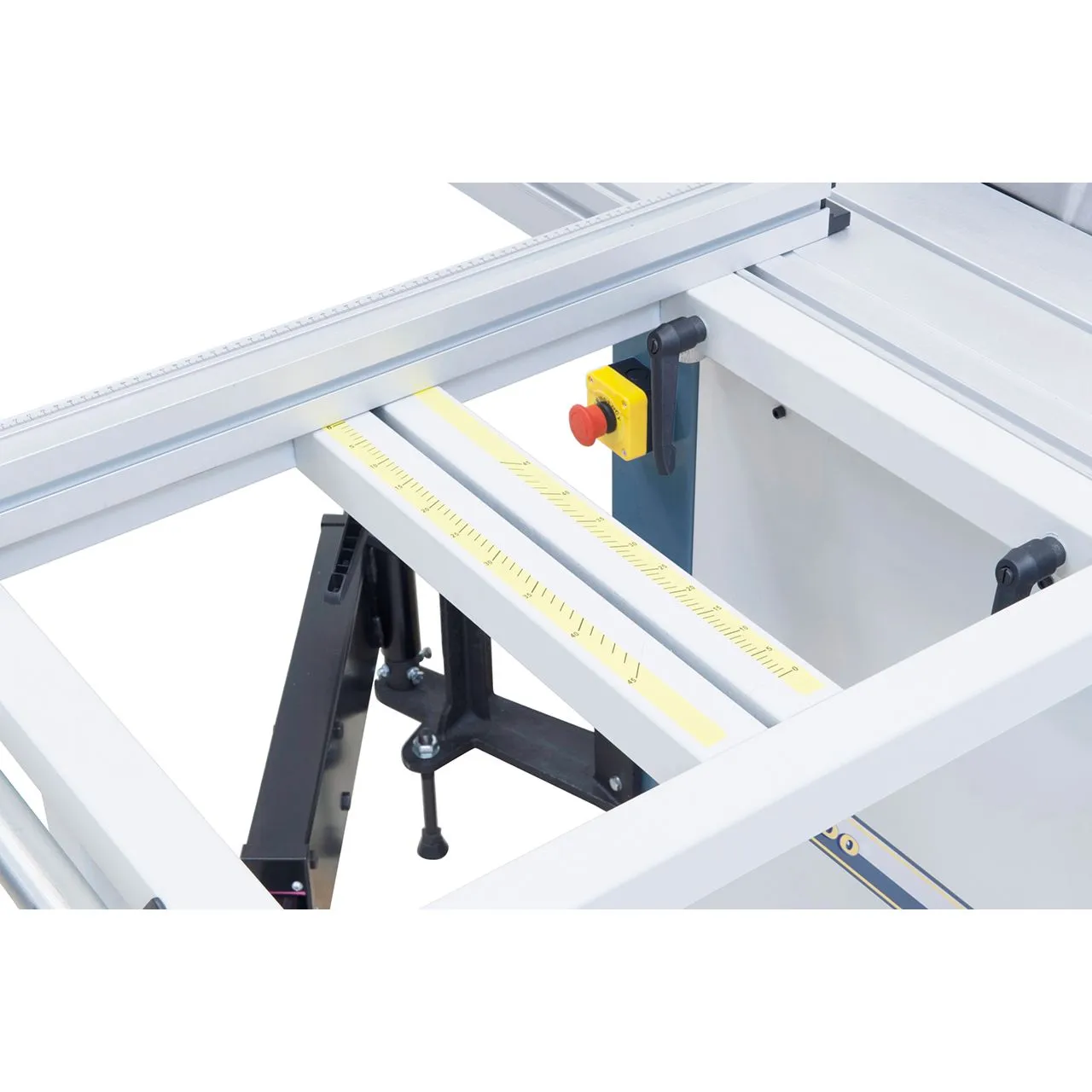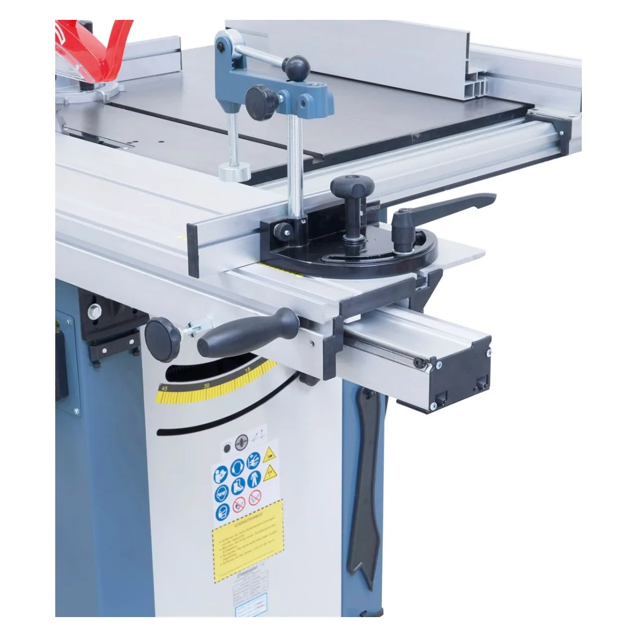 - Guide d‘onglet et serre-flan déplaçables sur toute la longueur du chariot