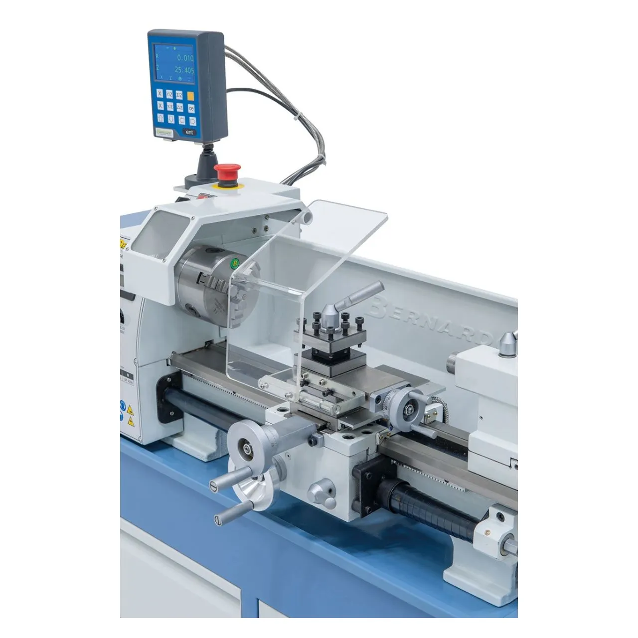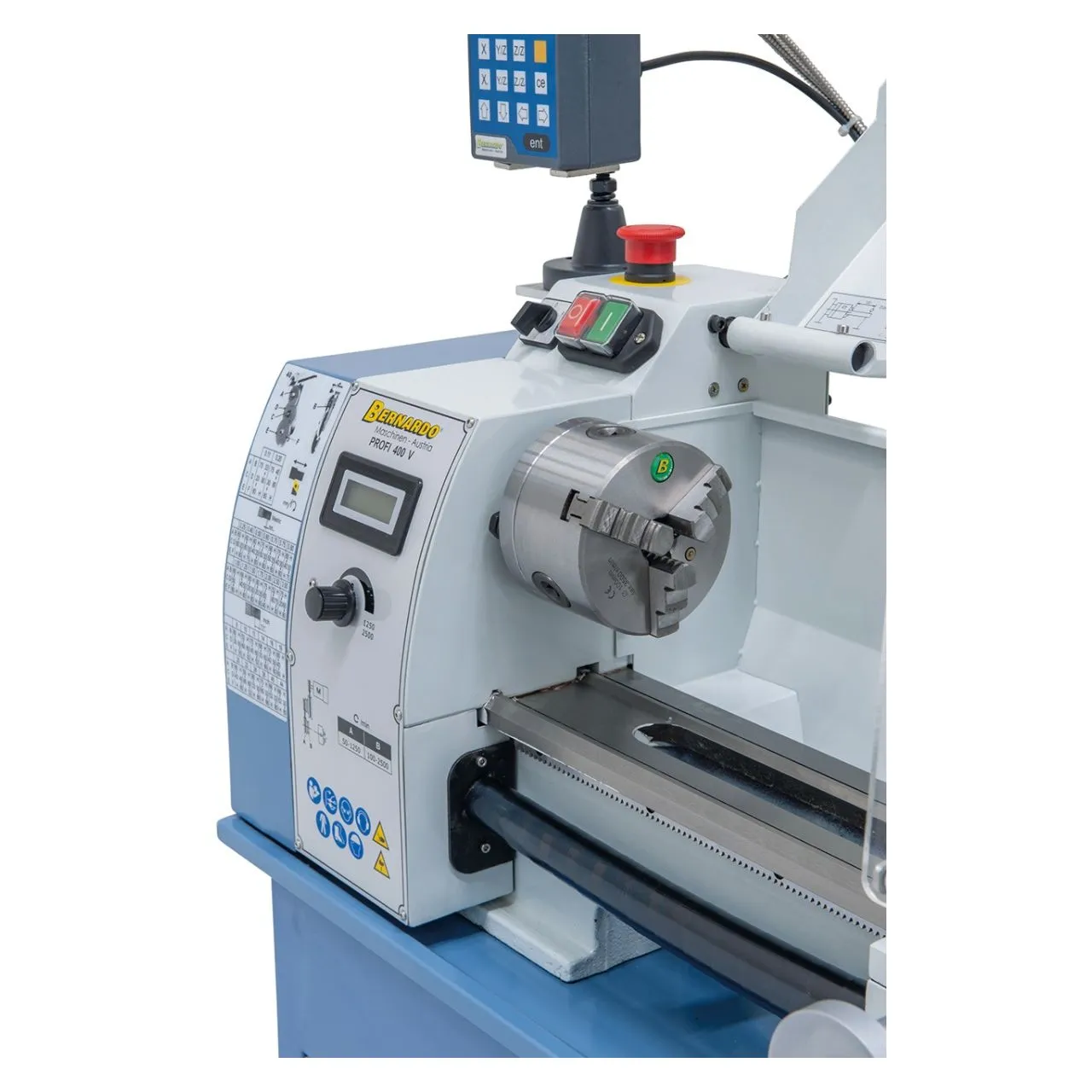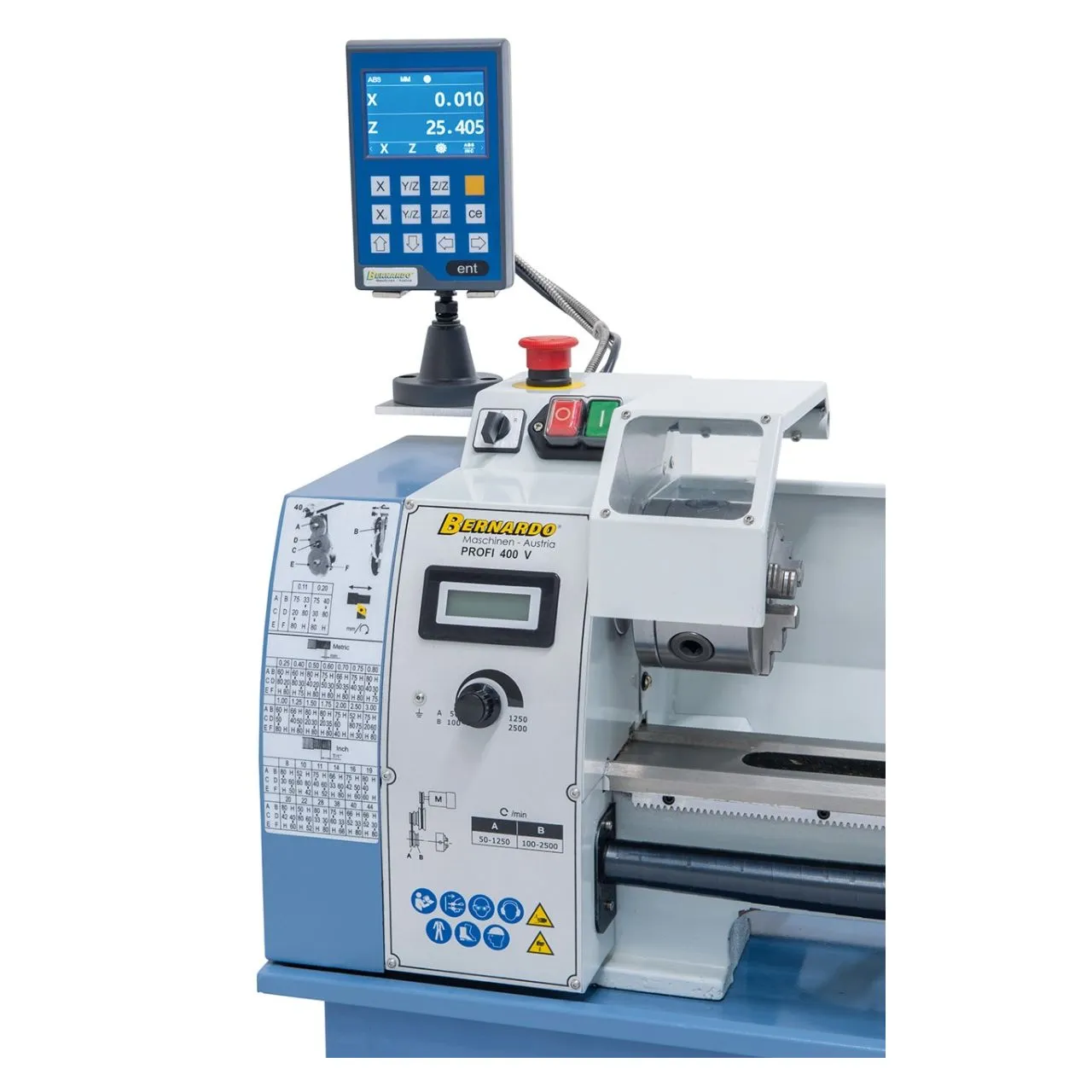 Le tour à métaux Bernardo Profi 400 V est équipé de série d‘un variateur de vitesse, avec lecture de la valeur réglée par affichage digital. Son excellent rapport qualité-prix en fait le modèle idéal pour le modélisme et le bricolage.