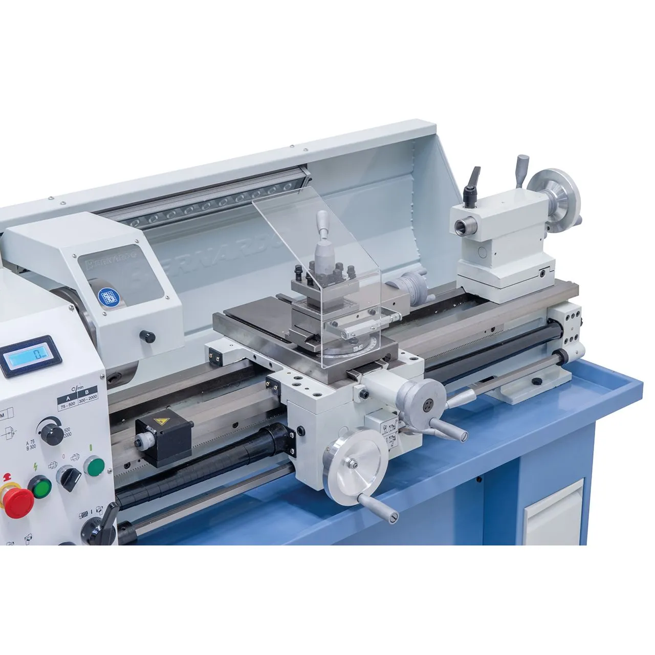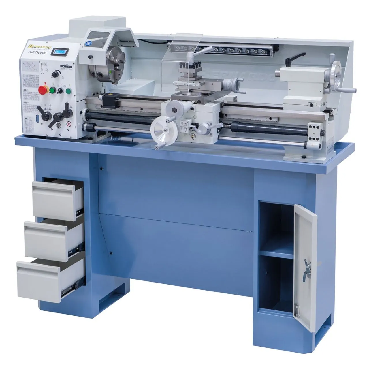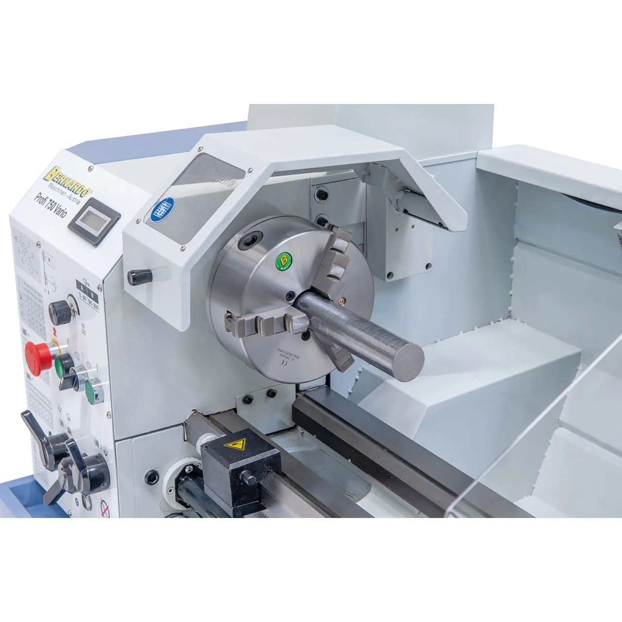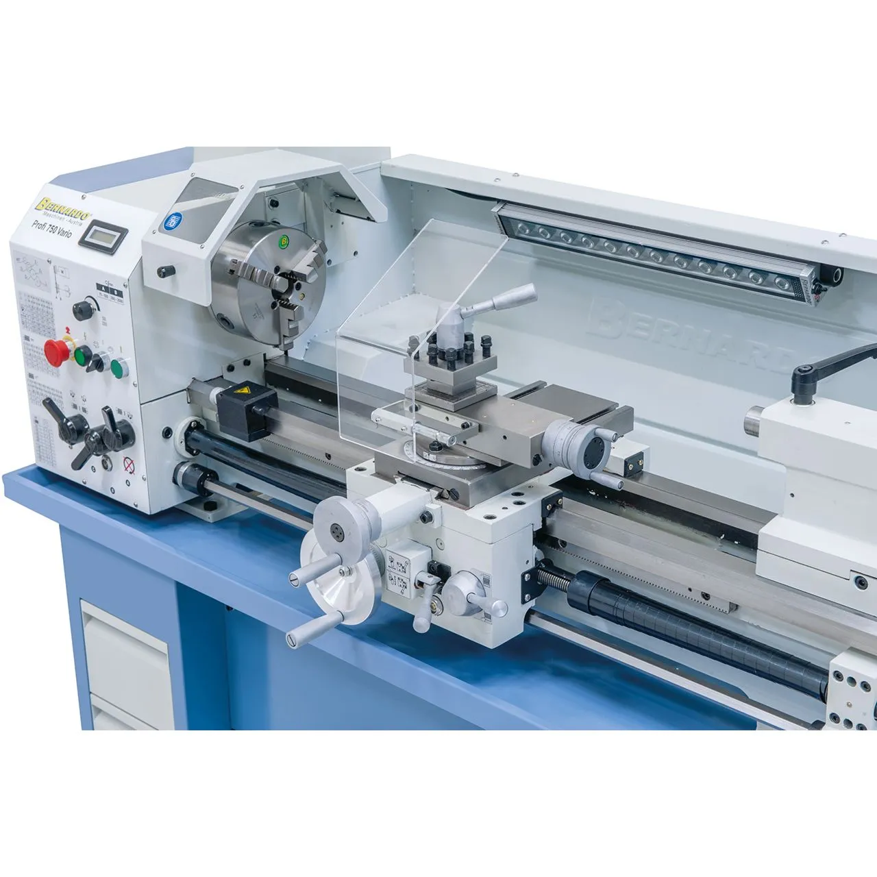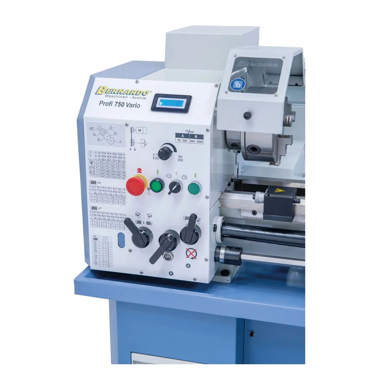 le tour à métaux universel Bernardo Profi 750 Vario en 400v est la machine idéale pour l‘utilisateur exigeant grâce son équipement complet de base (p. ex. : moteur triphasé avec convertisseur de fréquence, palier de broche principale de qualité P5, butée longitudinale micrométrique, accouplement à friction, éclairage machine à LED, …). Pour la réduction des temps de fabrication, ce modèle est aussi disponible avec un affichage numérique 2 axes.