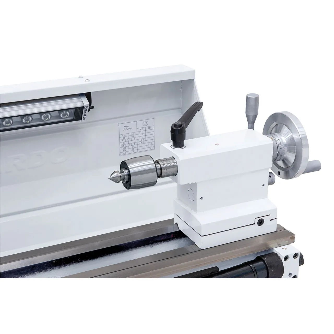 Inclus dans la livraison: Mandrin 3 mors 125mm, Flasque 125mm, Chariot transversal et supérieur, Contre-pointes fixes, Appareil à retomber dans le pas, Pignons interchangeables, Tourelle 4 positions, Éclairage LED, Protection de mandrin, Carter arrière, Protecteur de vis-mère, Outillage de service.